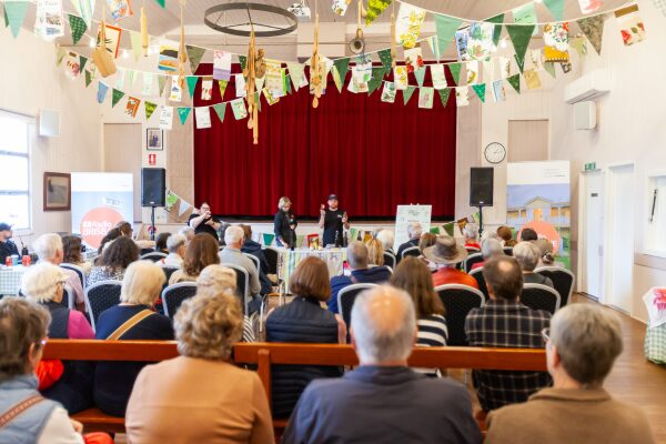 Venue offers wheelchair access via a side ramp and an accessible bathroom. A section of grass needs to be crossed to access the wheelchair ramp. Auslan interpretation provided.